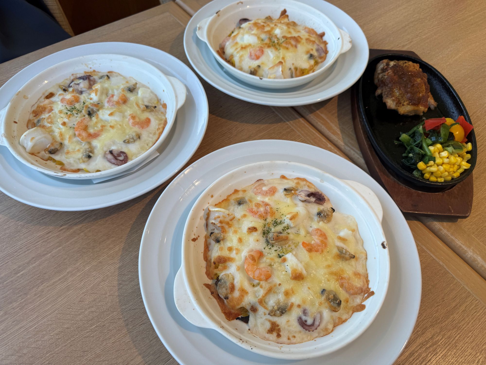 ここではケーキ+ご飯系(ドリア・ハンバーグ・パスタ等)を各自注文し、5,000円以内に収めました!