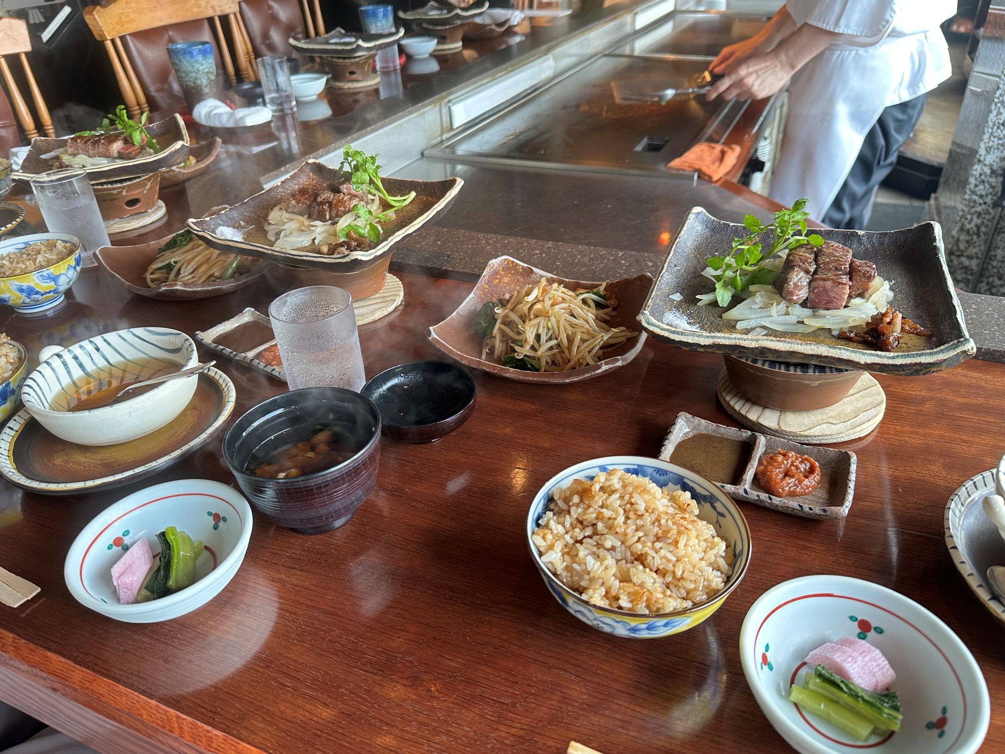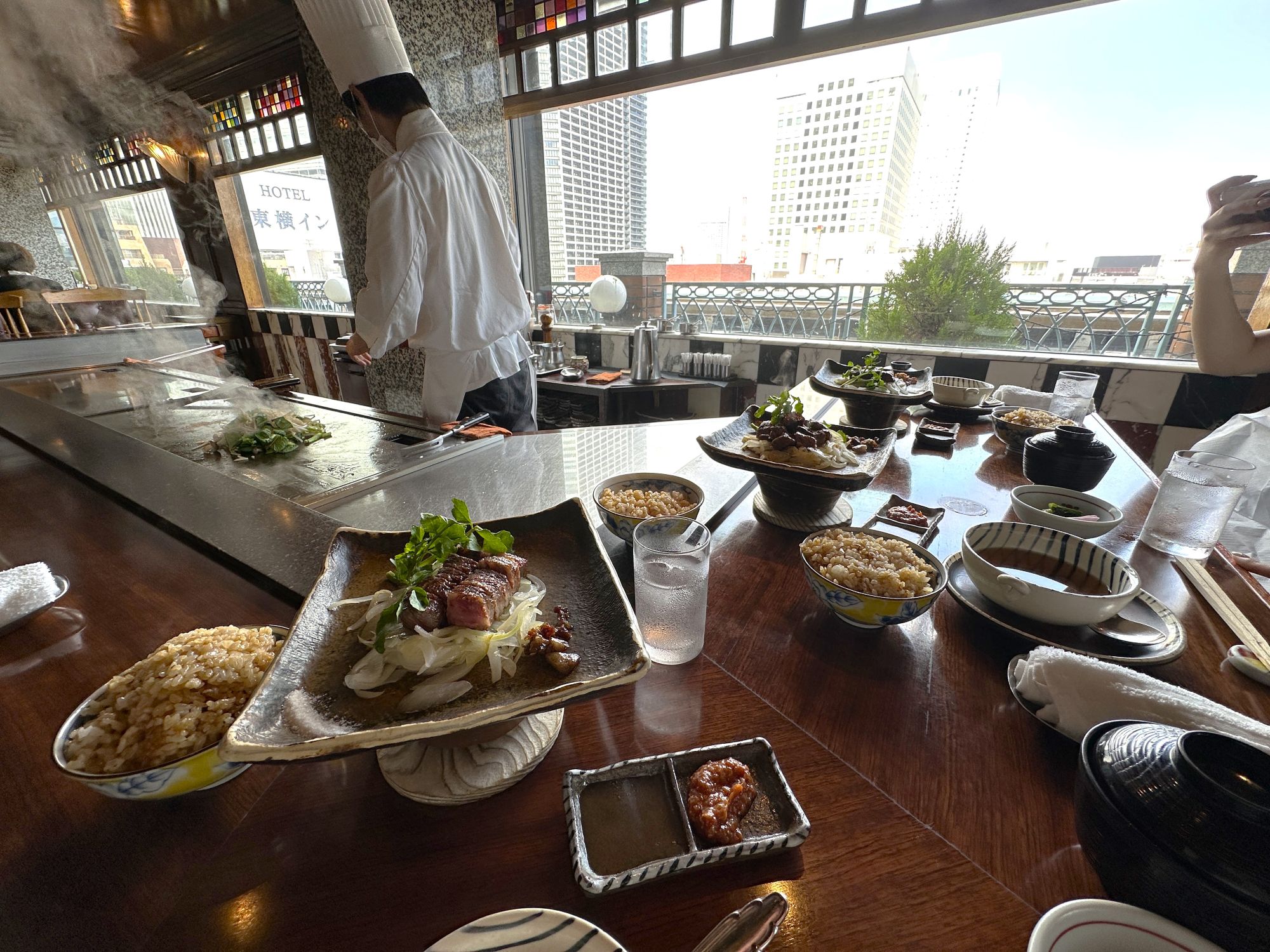 目の前でシェフがステーキを焼いてくれる本格鉄板焼きで、景色も雰囲気も最高だとか。